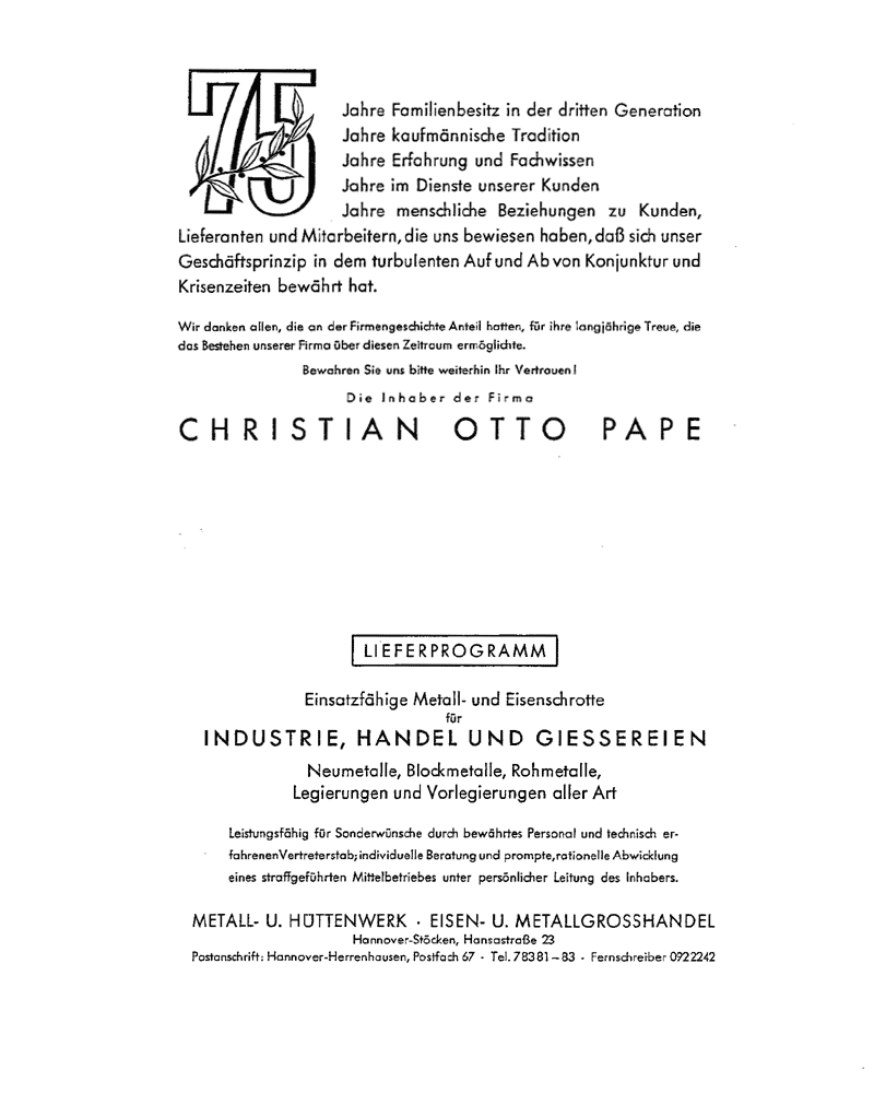 133 Jahre Chr. Otto Pape GmbH.